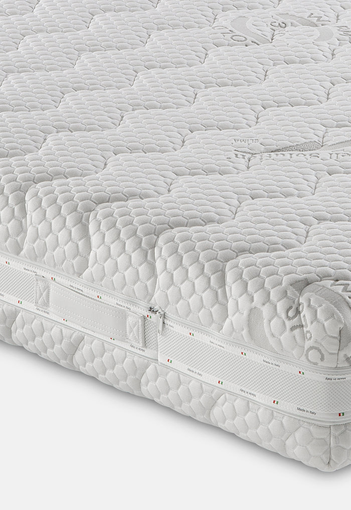 Sa forme en nid d'abeille rend la mousse de latex confortablement élastique, augmente sa remarquable capacité de thermorégulation et de ventilation, et assure une barrière contre la prolifération des bactéries et des acariens.
